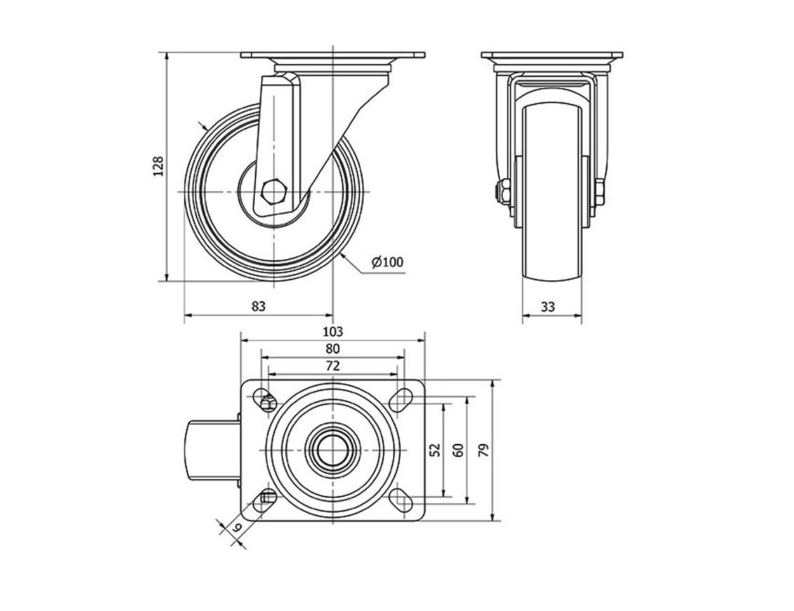 ALEX RUEDAS TW0043 GIRATORIA 100MM NYLON 125KG