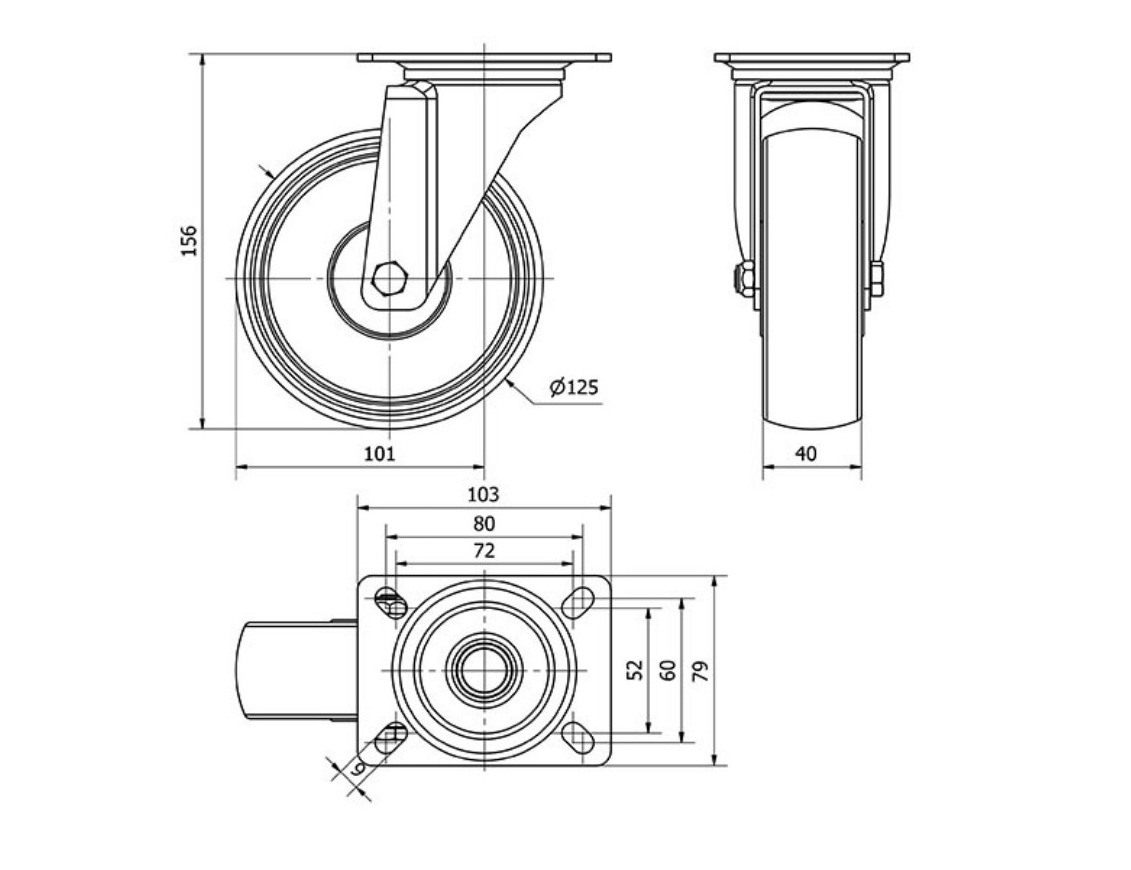 ALEX RUEDAS TW0044 GIRATORIA 125MM NYLON 160KG