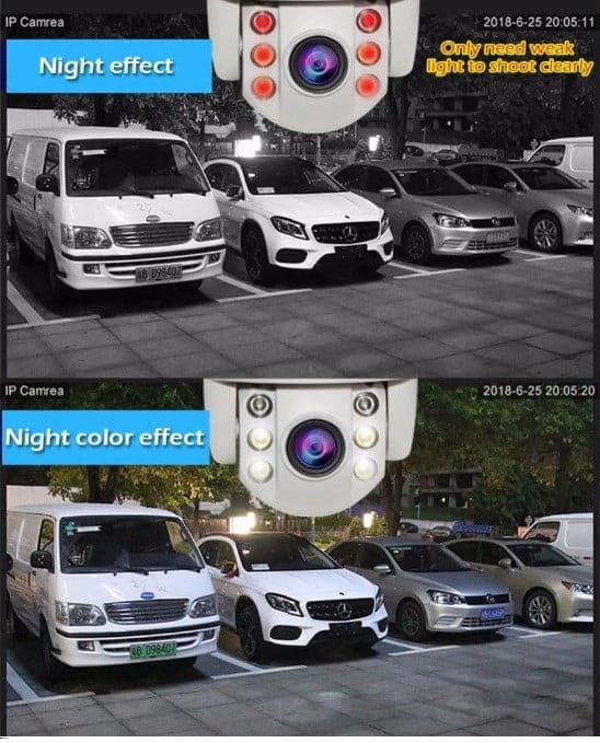 Por la noche, de acuerdo con la distancia focal de la cámara, la distancia cerca de la luz infrarroja / manual / luz lejana / luz cercana se cambia automáticamente.