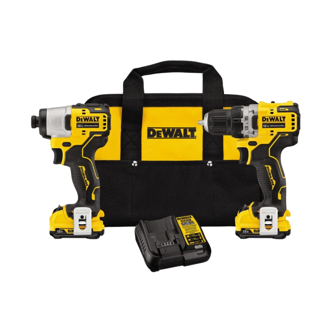 Este kit de herramientas inalámbricas DeWALT Xtreme 12 Volt Max incluye DCD701B taladro/destornillador de 12 voltios máx., DCF801B atornillador de impacto de 12 voltios máx., dos baterías DCB122 de 12 voltios máx., cargador de 12 voltios máx. – 20 voltios máx., clip para cinturón y una bolsa para el kit. Las herramientas inalámbricas tienen un motor sin escobillas para un máximo tiempo de funcionamiento y durabilidad. Las herramientas compactas y ligeras están diseñadas para espacios reducidos. El taladro atornillador de 3/8 de pulgada ofrece un 32% más de potencia, lo que es perfecto para una amplia gama de aplicaciones de perforación, especialmente la perforación de precisión como los orificios piloto. El taladro / destornillador tiene un mandril de trinquete de 3/8 de pulgada para una amplia variedad de brocas. La herramienta cuenta con una transmisión de alta velocidad con configuraciones de 2 velocidades y 15 configuraciones de embrague. Esta herramienta viene con 3 luces LED para iluminar la superficie de trabajo. La herramienta de taladro/destornillador es de 5,97 pulgadas de adelante hacia atrás con 250 UWO de potencia. El atornillador de impacto de 1/4 de pulgada con motor sin escobillas es perfecto para muchas aplicaciones de fijación. El destornillador de impacto mide solo 5.05 pulgadas de adelante hacia atrás y viene empaquetado para funcionar con 1450 pulgadas-lb de torque. Esta herramienta de destornillador tiene 3 configuraciones de modo, incluida la función de tecnología Precision Drive™ para mayor precisión.