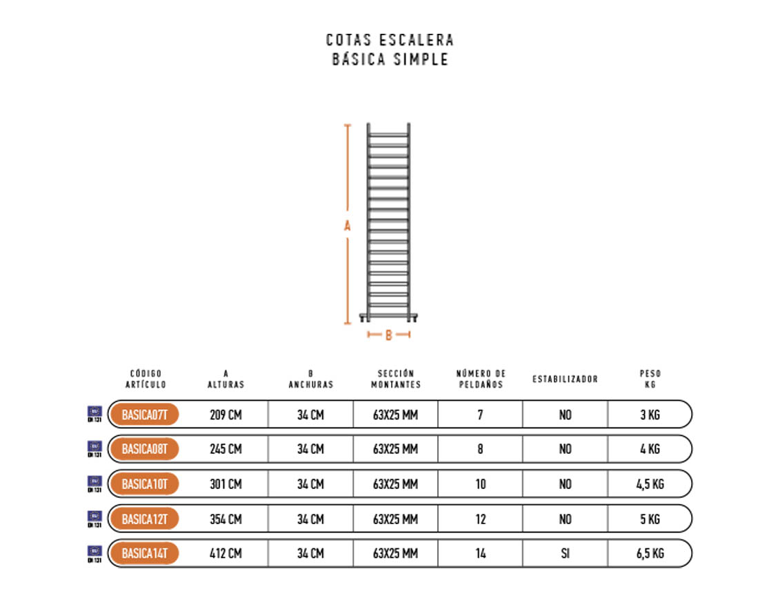 ESCALERA PROLINE BASICA SIMPLE 14T