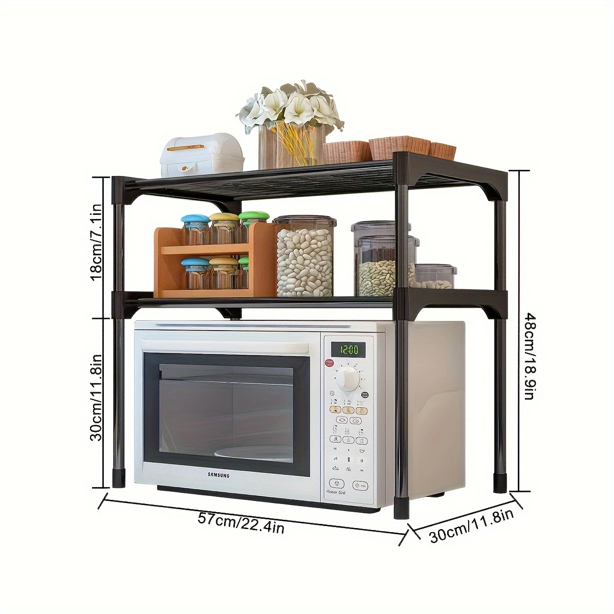 “Ahora será más fácil almacenar tus utensilios de cocina y microondas, de una forma más óptima y ordenada. Con este estante también podrás ordenar tus especias, botellas, utensilios, etc.”