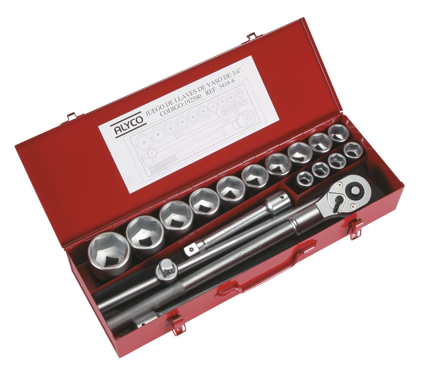 Juego de llaves de vaso de 3/4” de 18 piezas ideal para cualquier trabajo mecánico pesado de grandes aprietes en mecánica, camiones, tractores, etc.