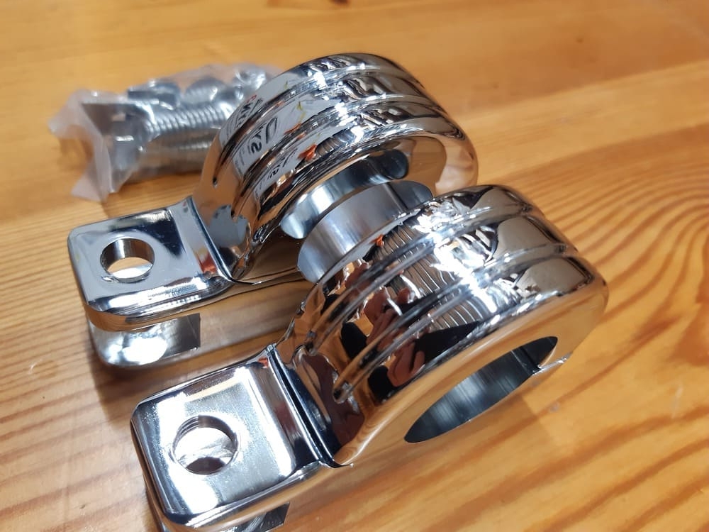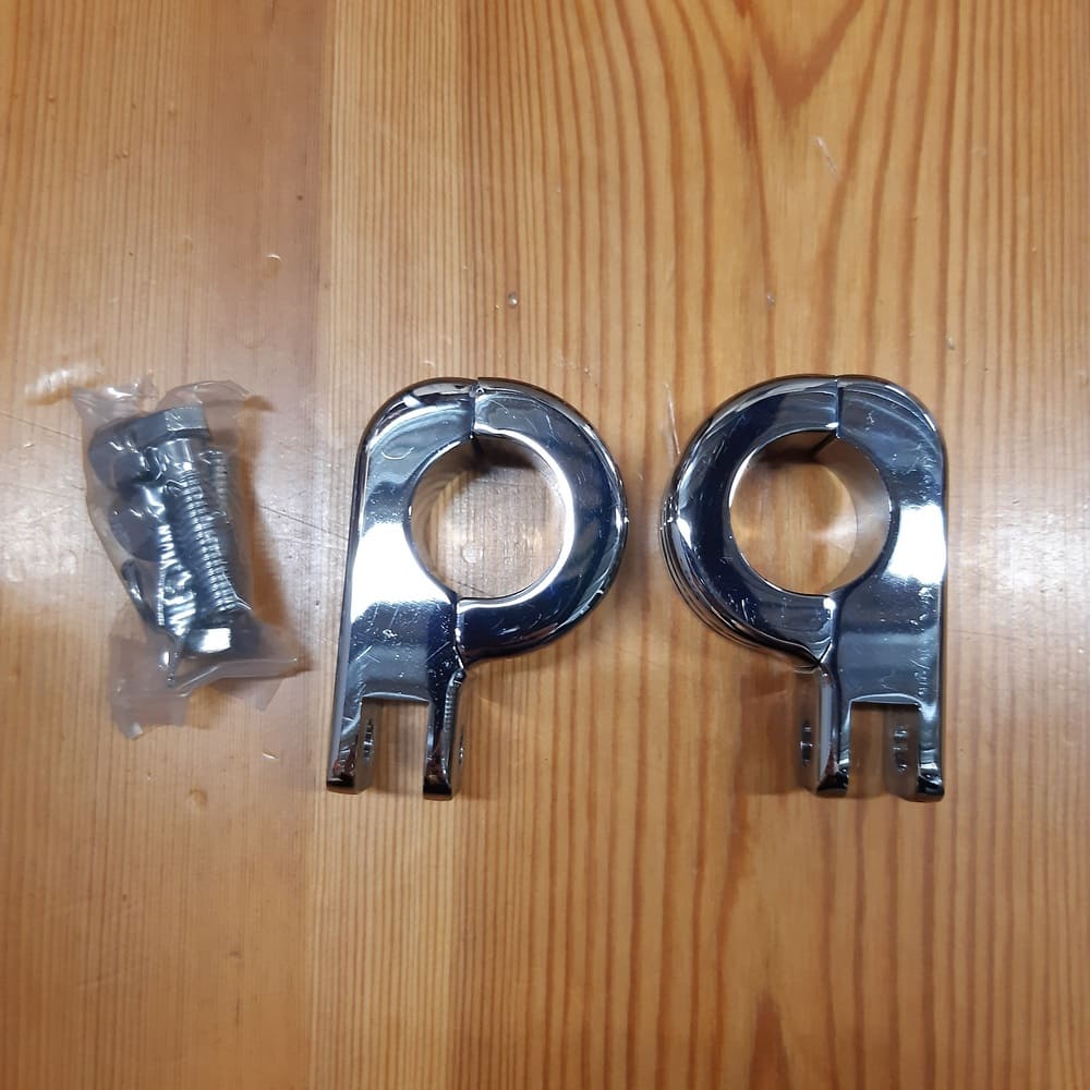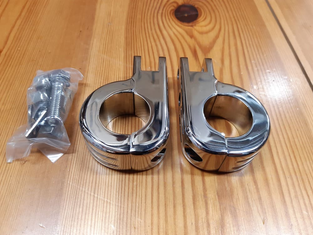 - Kit de fijación de estriberas para las protecciones delanteras del motor con un tubo de 1,25 pulgadas de diámetro.