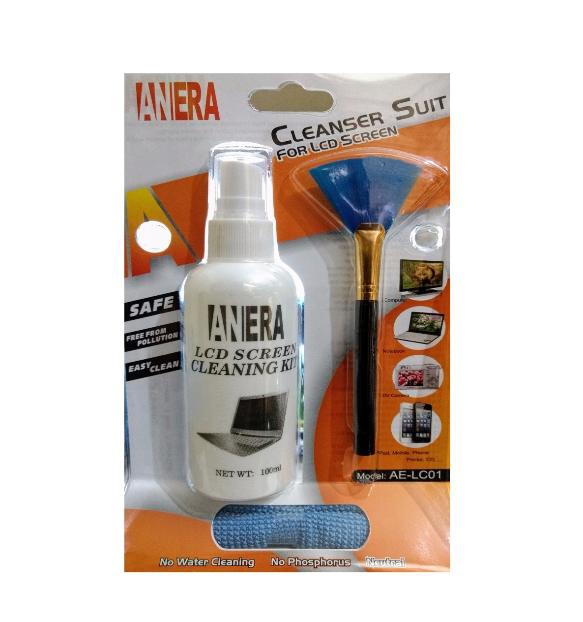 Líquido para limpieza para pantallas, LCD, LED, computadores, monitores, celulares, TV, modelo AE-LC01.