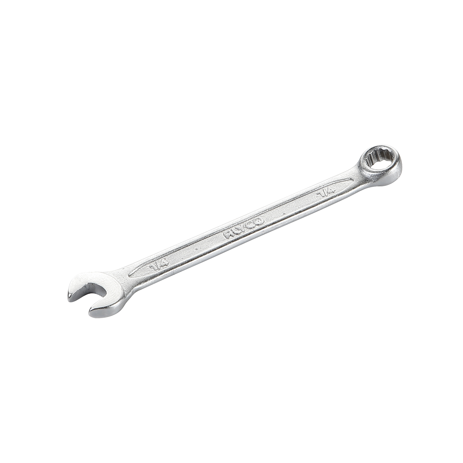 Llave de dos bocas una abierta y otra de estrella con aristas redondeadas, fabricada en Acero al Cromo- Vanadio, forjada de una sola pieza, endurecida por tratamiento térmico, y con tratamiento superficial de cromado para evitar la oxidación.