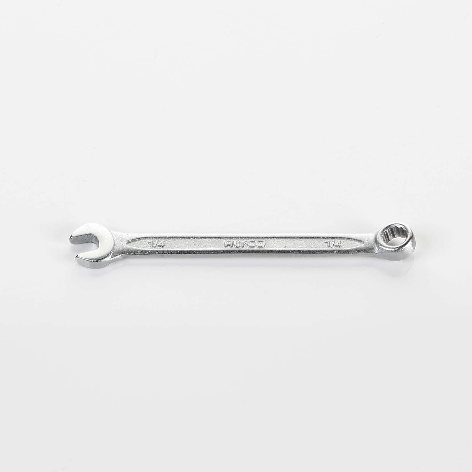Llave de dos bocas una abierta y otra de estrella con aristas redondeadas, fabricada en Acero al Cromo- Vanadio, forjada de una sola pieza, endurecida por tratamiento térmico, y con tratamiento superficial de cromado para evitar la oxidación.
