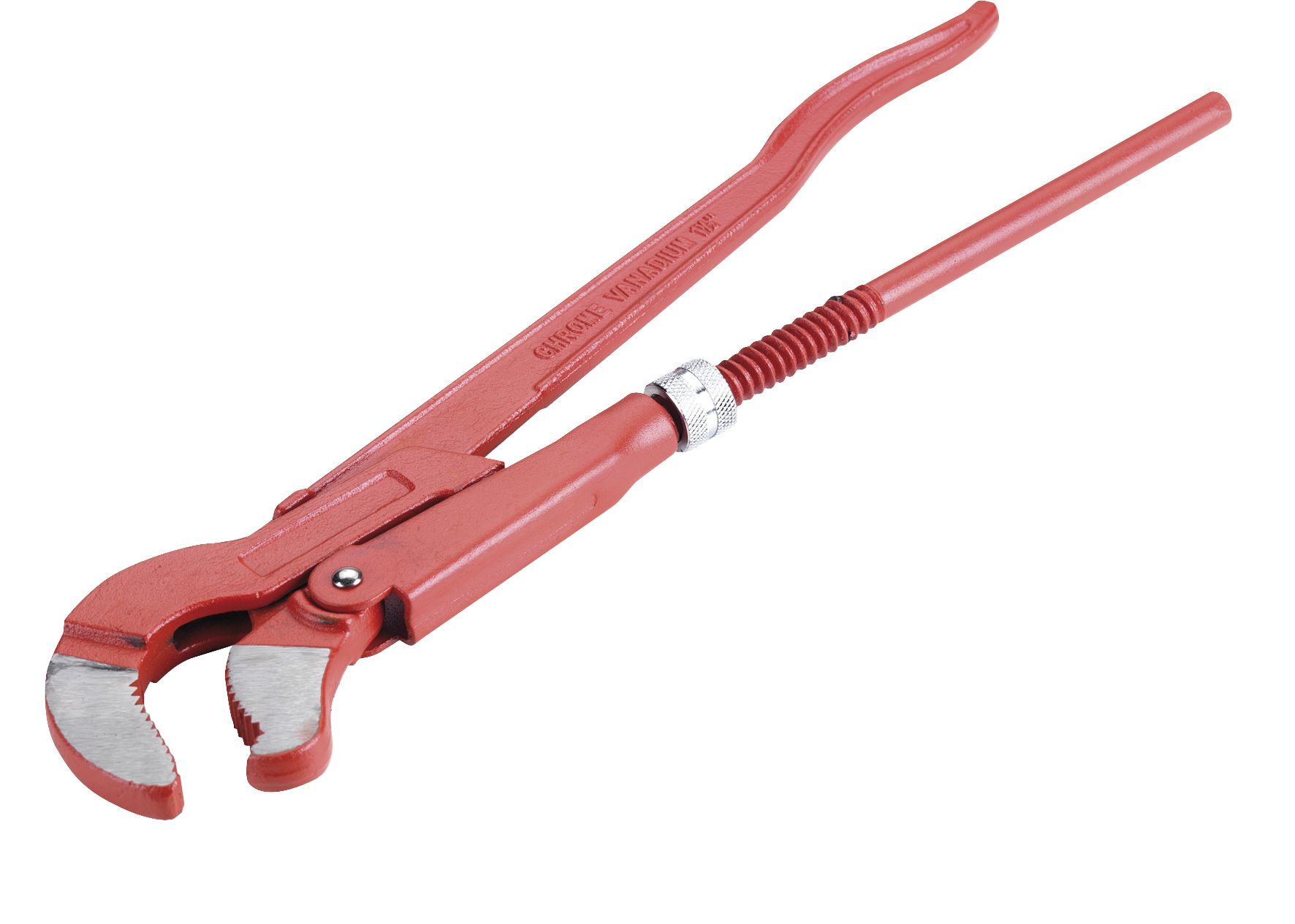 Llave suecas para apriete de tubos con mordazas en S en Acero al Cromo- Vanadio, lo que le da gran dureza, vida útil y capacidad de apriete.