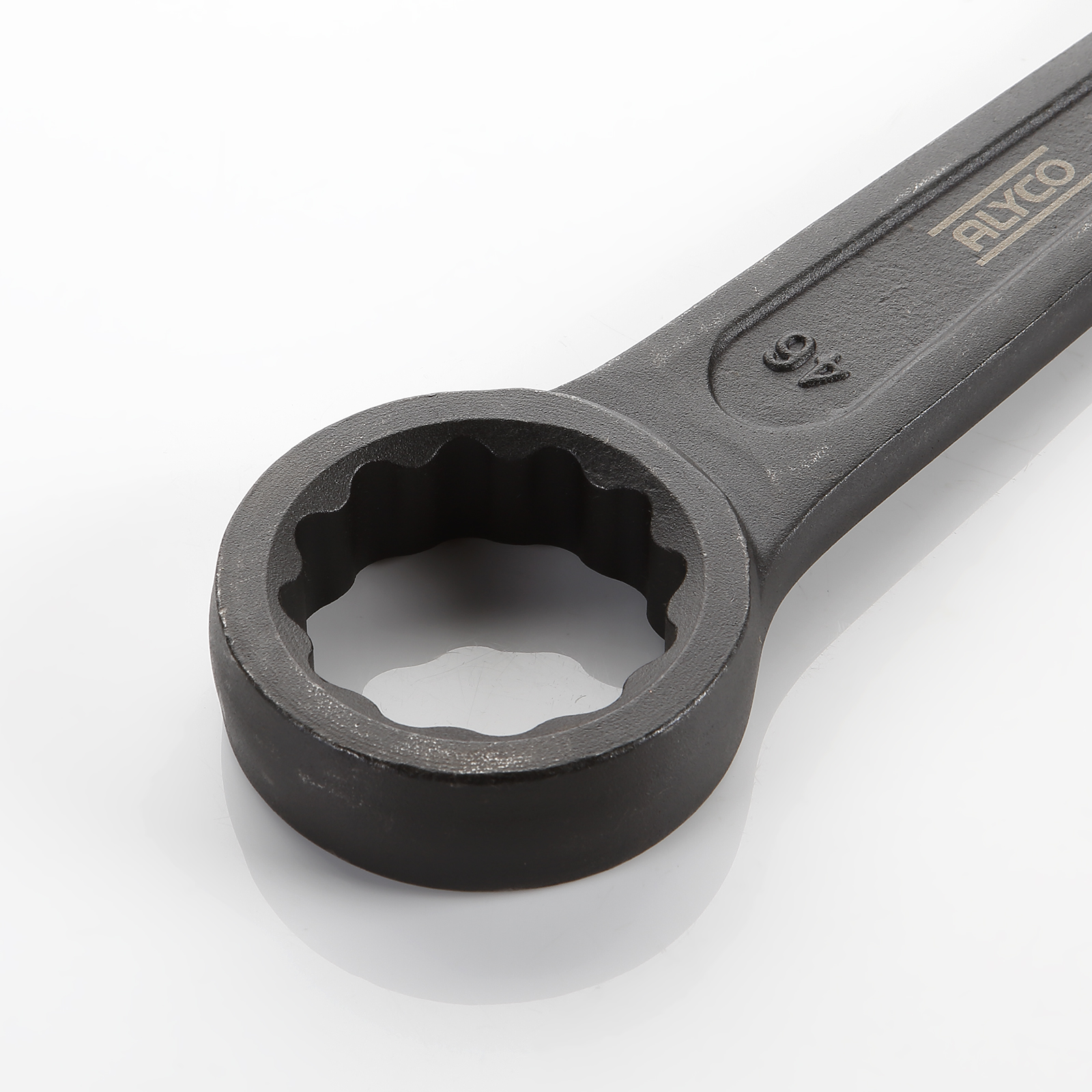 Esta llave está especialmente diseñada para ser usada mediante golpeo para ello dispone en la parte trasera de una zona diseñada especialmente resistente para recibir los impactos del martillo.