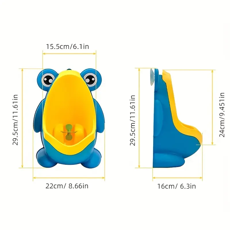 El orinal portátil infantil de rana es un dispositivo especialmente diseñado para niños pequeños que están en proceso de dejar el pañal. Su estructura está pensada para imitar un urinal de adulto, pero con un diseño amigable y lúdico: el de una rana sonriente que transforma esta etapa en una experiencia positiva.