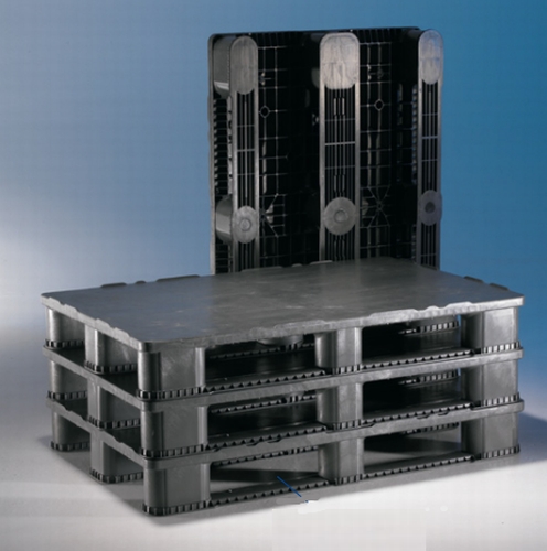 Palet con patas con la base lisa por arriba y revirada por abajo con 3 patines, fabricado en polietileno reciclado de alta densidad resistente a los rayos ultravioleta e infrarrojos, ácidos, al paso del tiempo y a altas y bajas temperaturas. Palet de gran utilidad para el almacenamiento y transporte de mercancías con carretillas. Capacidad de Carga 4.000 Kg. en estantería. Fácilmente lavable con agua e insensible a variaciones de peso con el contacto con el agua o zonas húmedas.