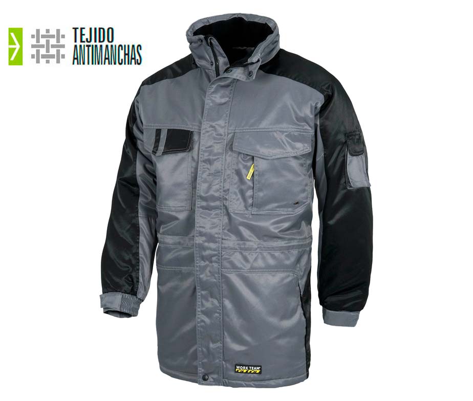 • Parkas de trabajo antimanchas y alta resistencia para uso laboral. Adecuada para industria, construcción, fábricas, transportistas, camioneros, mecánicos, electricistas, carpinteros, aeropuertos, operarios de grúas y obras públicas. Perteneciente a la marca española WorkTeam, especialista en diseño y confección de ropa de trabajo de calidad.