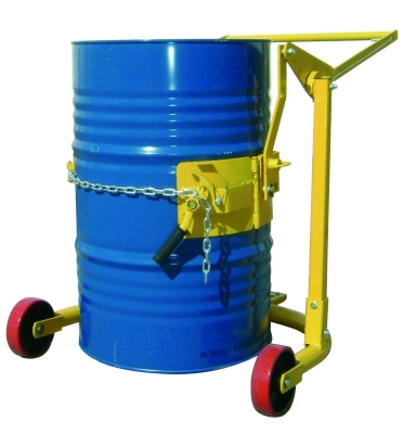 Rotador de bidones, adecuado para bidones de acero gracias a su trinquete ajustable. Gracias a su palanca, los bidones se elevan, giran, agitan, vacían y se transportan con gran facilidad. Altura de vaciado 395mm.