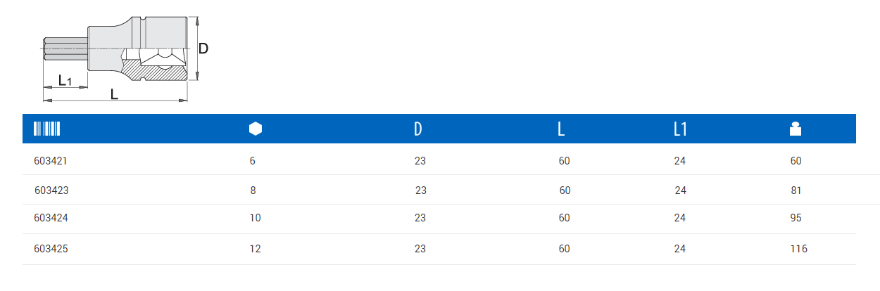 UNIOR*Vaso 1/2″ HX-10 – 192/2HX