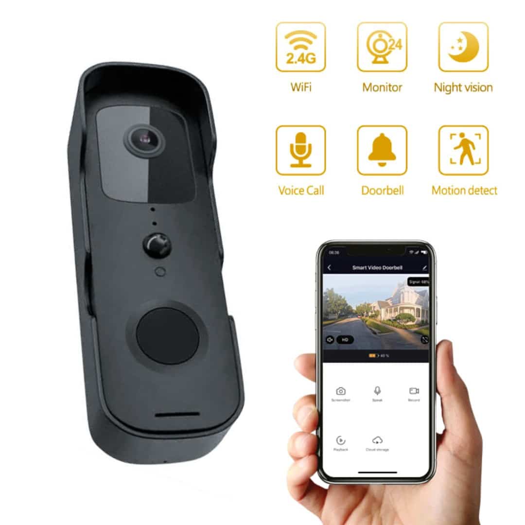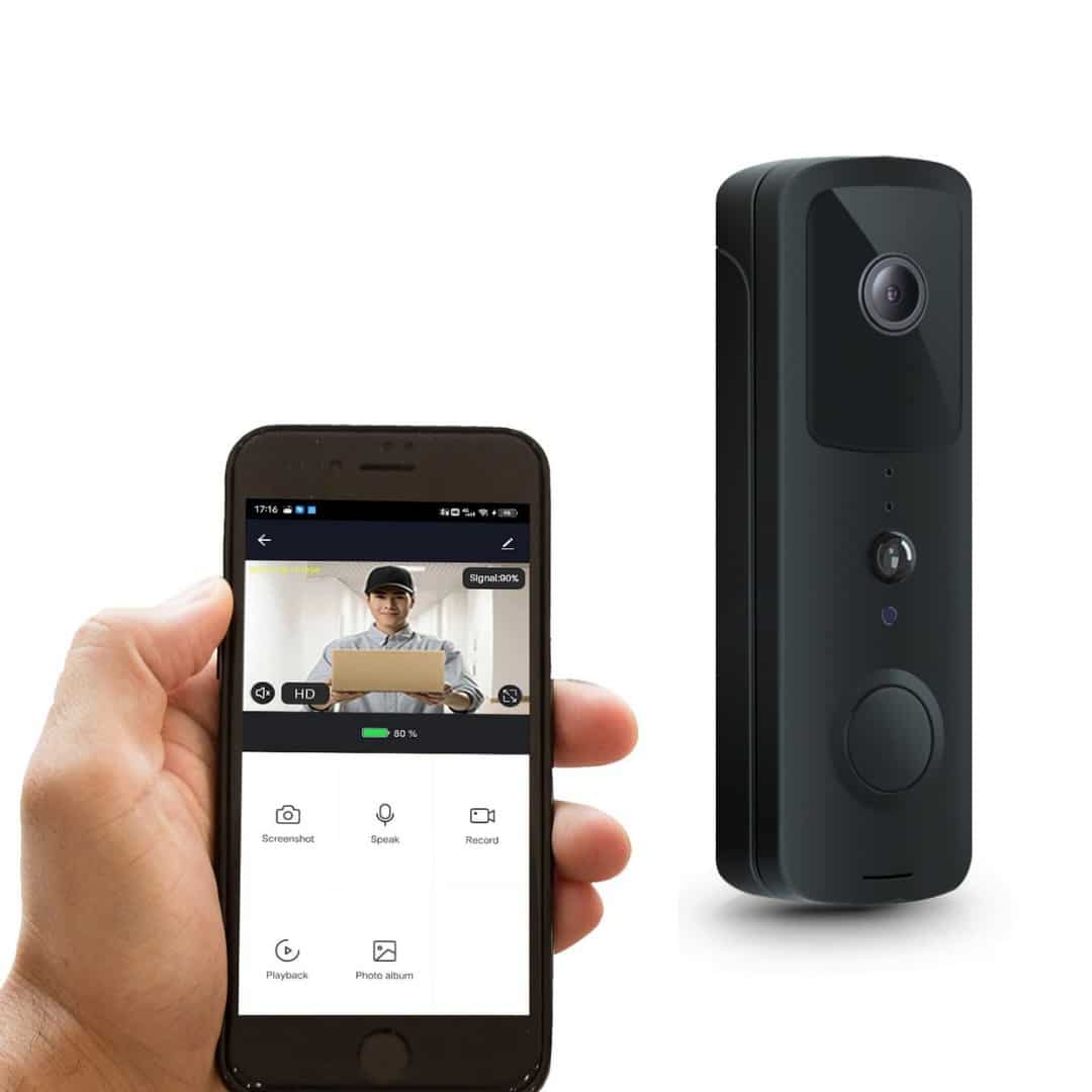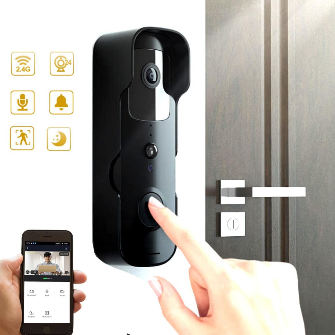 Video Portero 100% inalámbrico. Se puede utilizar en exteriores con audio en dos vías, puedes incorporar micro sd para guardar grabaciones, puedes Compartir la aplicación con demás Familiares y cámara de alta resolución 1080p